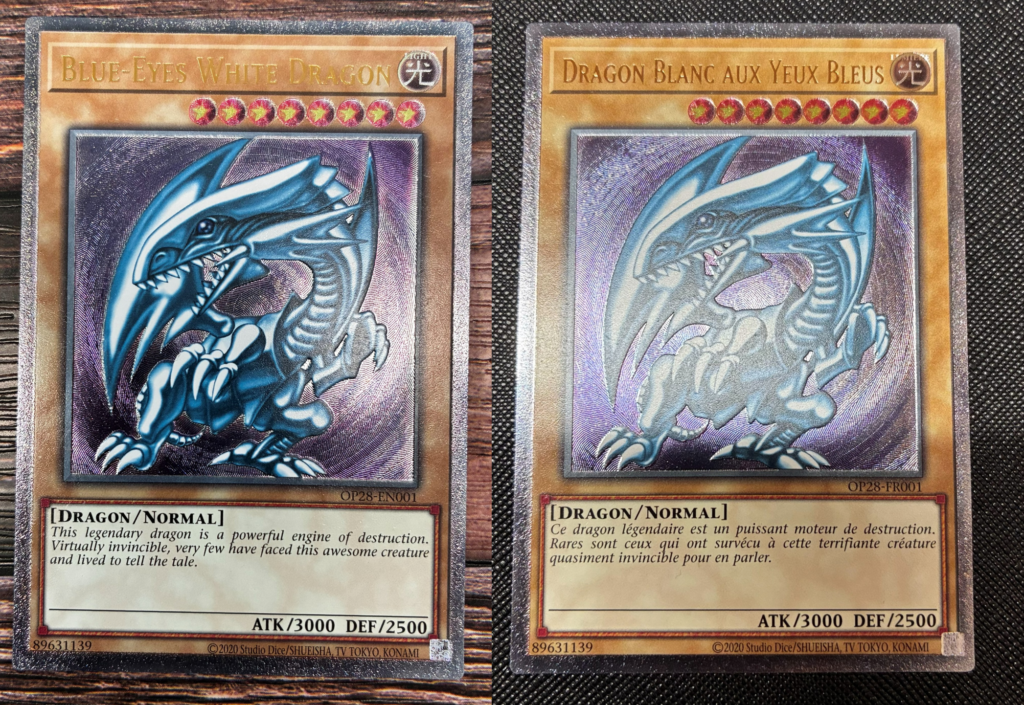 相場感としてはフランス版はかなり安めです。1枚強いのほしいなあと思ったらフランス版を買うのが良いかなと思っています。EU英語版は流通数の少なさがネックで、青眼の中では高額の部類になります。